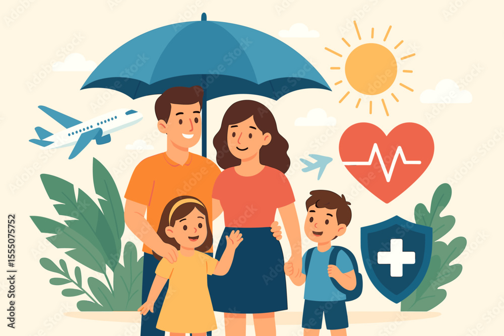 (Suggested Featured Image: Happy family traveling safely under a protective shield, symbolizing the security of travel insurance.)